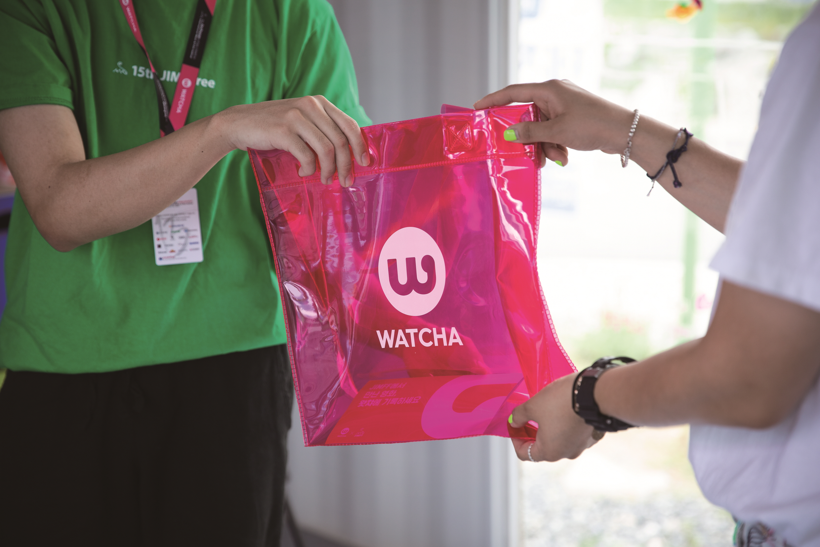 왓챠 어플리케이션에서 JIMFF 공식 계정을 팔로우하면 특별한 PVC 비치백을 선물로 드려요!